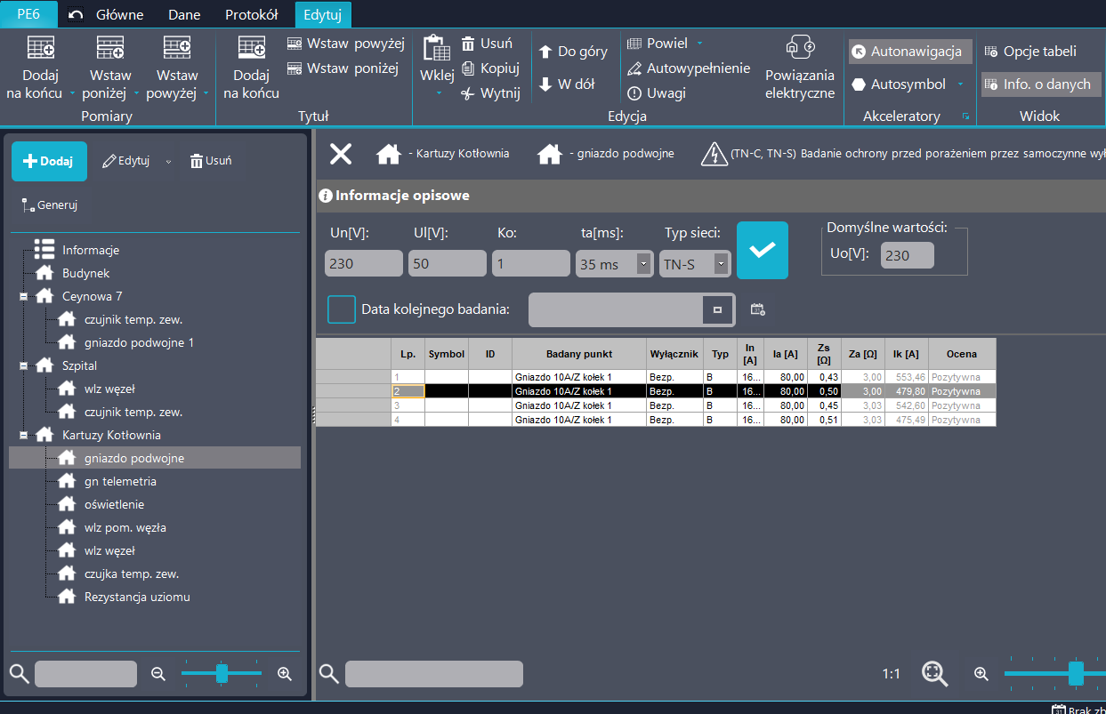 Program do wykonywania dokumentacji z pomiarów z serii Sonel PE.